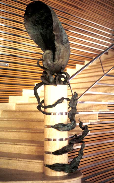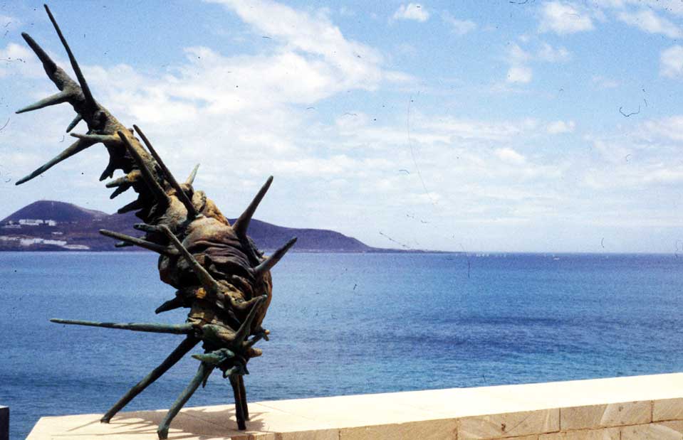 Invitations to work in the urban space came frequently for a period of time, followed by silence. Some of the projects did not have any previous conditions, including amongst those: The wall or equilibrium’s tale in Sta Cruz de Tenerife, The seashells in Puerto del Rosario (Fuerteventura), The orator of the Baptist and Le-Ga-Nés in Madrid, etc. But most of the ocassions the invitations had a stipulated subject matter, including the 9 Olympic fountains and the monument Als Sempé in Barcelona, and the monument to Negrín in Las Palmas, etc.