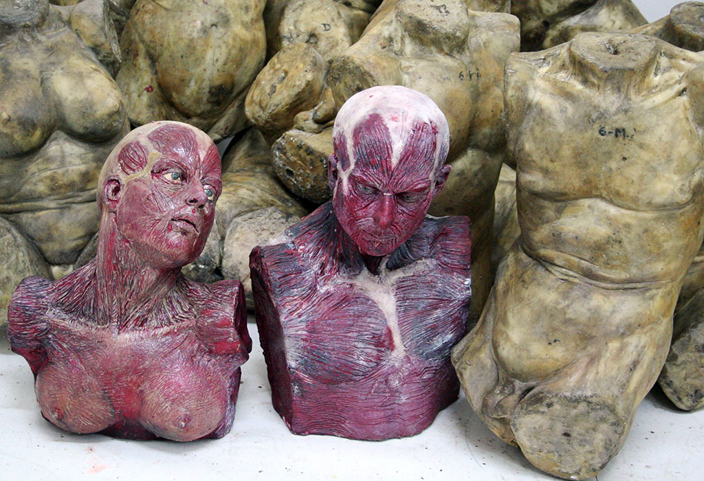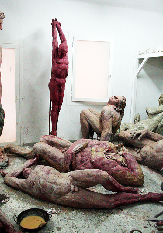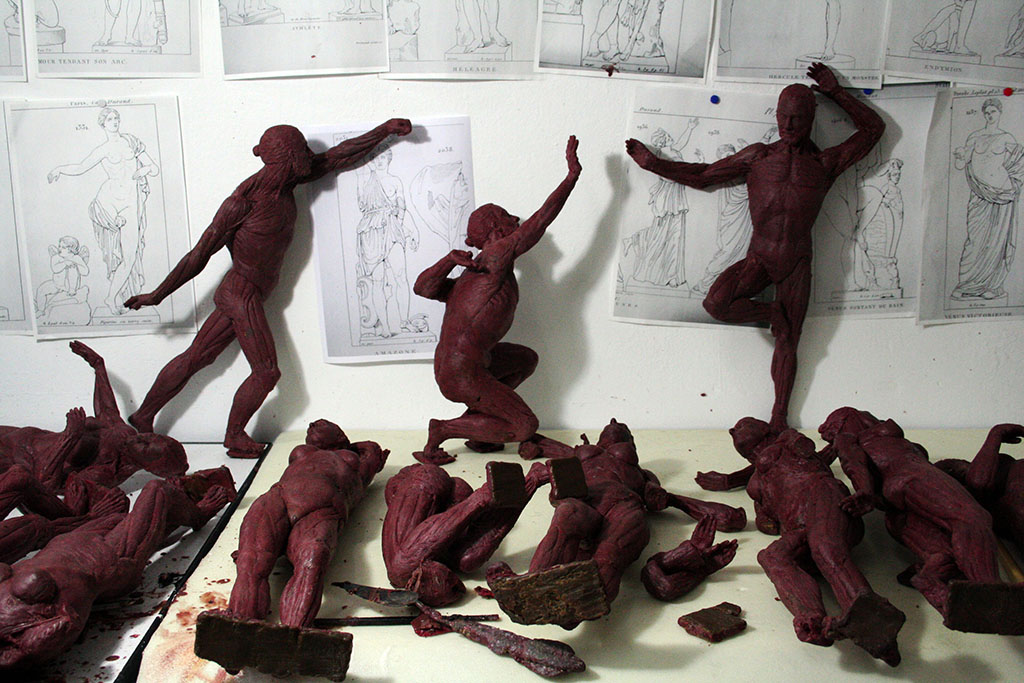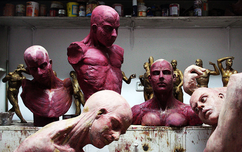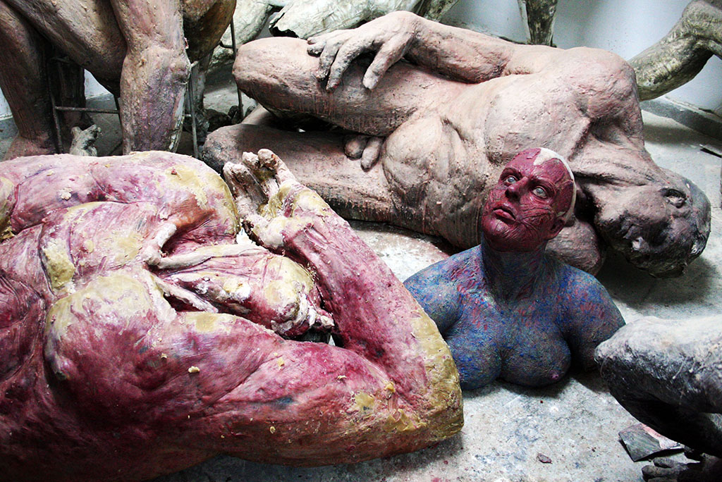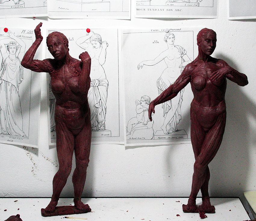 I’ve always avoided the study of the correct anatomy of the figure. I’ve preferred working from ignorance, but with the strategy of respecting a certain anatomical logic. Precisely that logic was derived from the use of laminated materials simulating the skin of the figure. However, when I initiated my interest in the skinned body (as a metaphor for the humiliation of beauty) I’ve consulted anatomic models, but always avoiding an obsessive submission. An it is in this atmosphere that I am currently working on my figures.