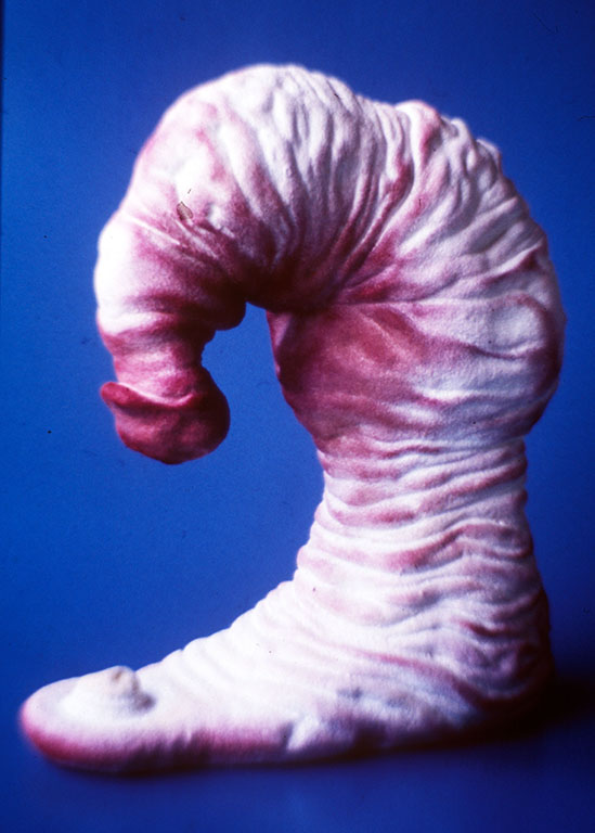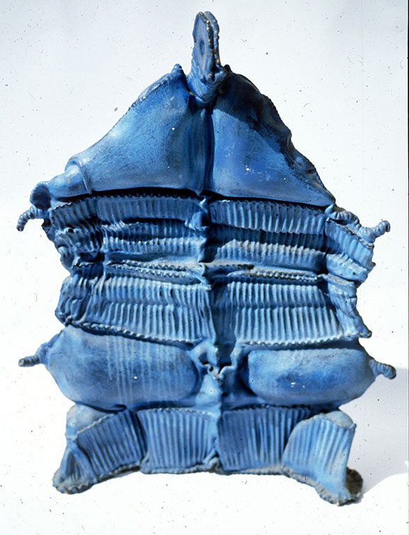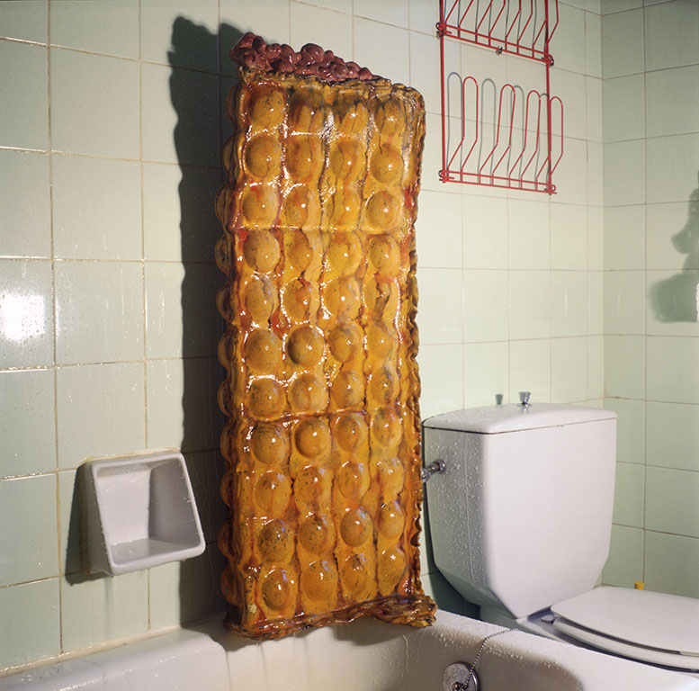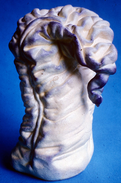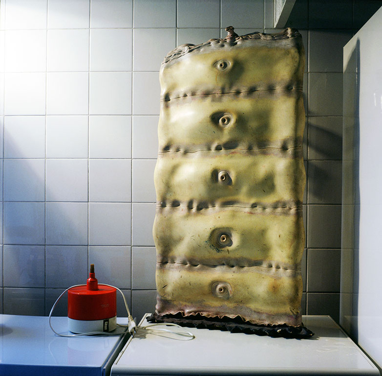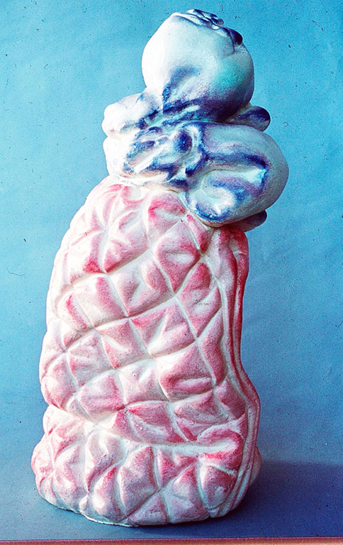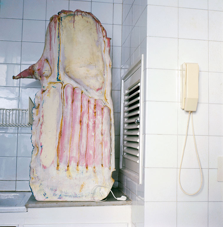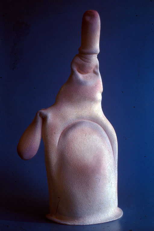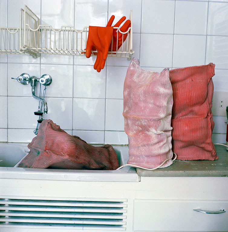 These are objects on an ambiguous frontier between personal hygiene tools, erotical toys and sauna-dresses, dividen into three series. The first has organic shapes made in polyester resin with the usual casting technique. In the second one, I started a personal procedure based on directly modeling a thermoplastic and, as in the third series, with pneumatic and inflatable shapes. For the third one, using the same technical features and industrial aesthetics as the second series, the sizes greatly increased. A first part was exhibited at Galería Vandrés (1977), and with a continuation at Alexandria Biennale (1978).