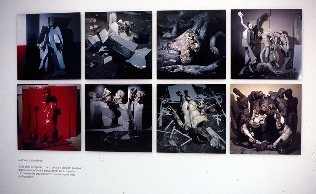 El espacio neutro de una sala de exposición dista mucho del taller donde construyo mis obras, que conviven contaminándose unas a otras con ideas y tiempos distintos. Sin embargo, al pasar a la luz y el silencio de una galería, las obras experimentan una depuración e intensificación de los significados al rodearse de una zona de alta tensión y sin interferencias.